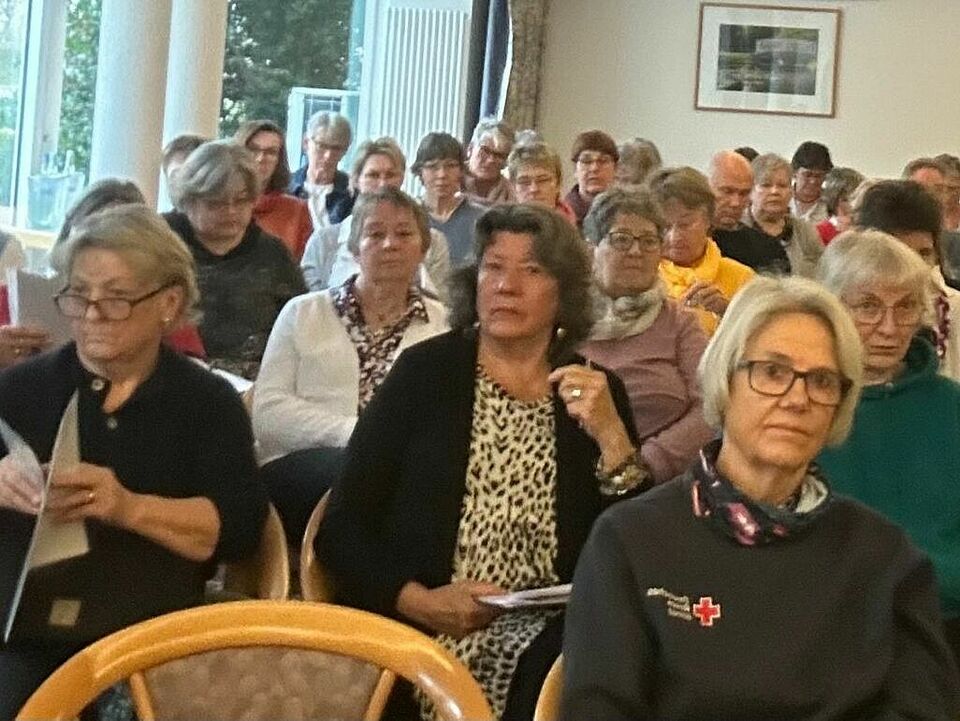 DRK Regionalkonferenz in Borgstedt (Dörpshus). Kein Stuhl war mehr frei als Präsidiumsmitglied Karin Büchler mit ihrem Einführungsvortag die Sitzung eröffnete. Aufgaben, Strukturen sowie Tipps für die praktische Arbeit Vorort standen im Mittelpunkt ihrer Ausführungen. Frank Harupka führte im Anschluss in Sinn und Zweck der neuen Ehrenamtsplattform (Internet) zur Stärkung des Ehrenamts sowie zur Mitgliedergewinnung ein und erläuterte Grundzüge der Funktionsweise. Vorstand Thomas Stritzl stellte weitere Aktivitäten des DRK Kreisverbands wie z.B . die sog. Alltagshilfen und das neue Angebot zur Ausbildung von betrieblichen Brandschutzhelferinnen und - Helfern dar.