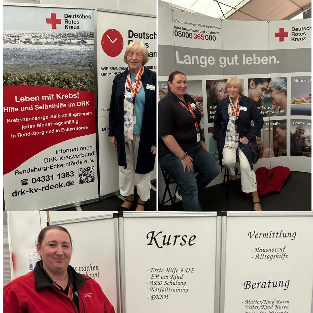 Auch wenn der „Wettergott“ es an diesem Sonnabend mit den ehrenamtlichen Mitarbeiterinnen, die den Stand besetzten, nicht sehr gut gemeint hatte (es regnete seit langem ununterbrochen), konnte das Team mit vielen Kunden des Marktes interessante Gespräche über das DRK führen.