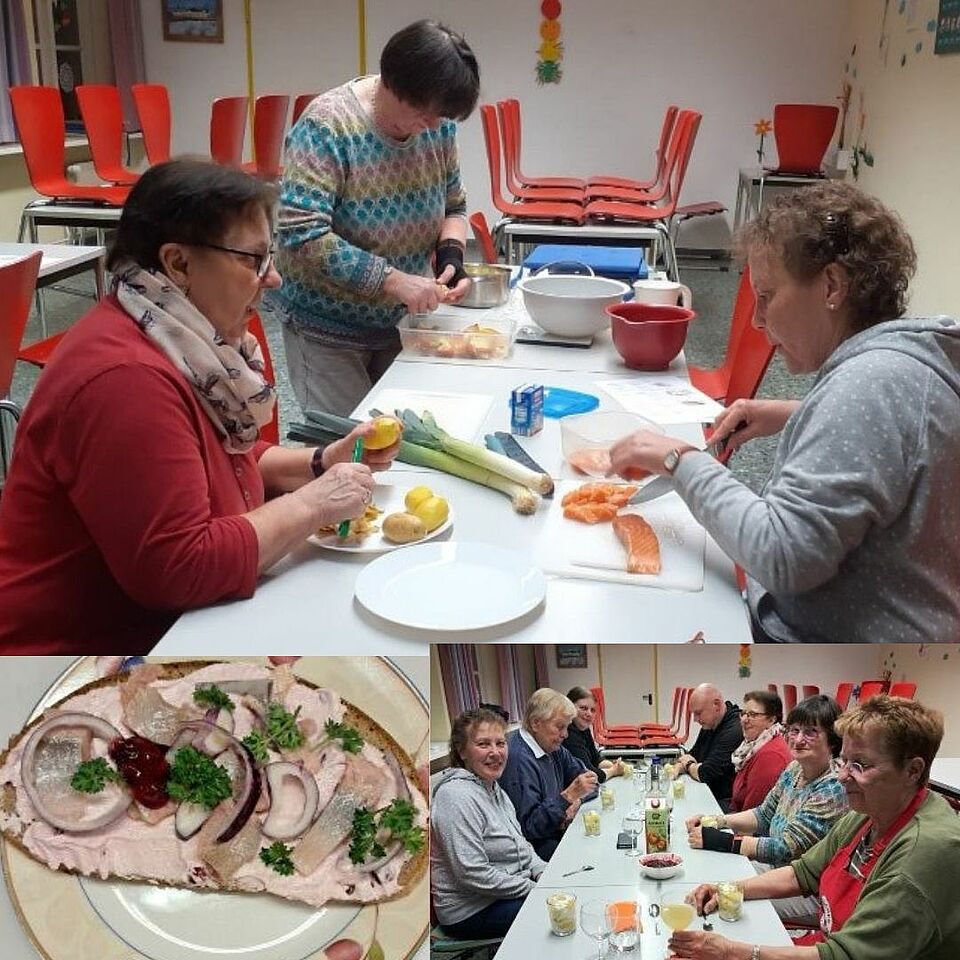 Auf Wunsch von Mitgliedern boten wir Rezepte unserer nordischen Nachbarn an. Zu acht ging es an die Arbeit. Es musste einiges geschnippelt werden.