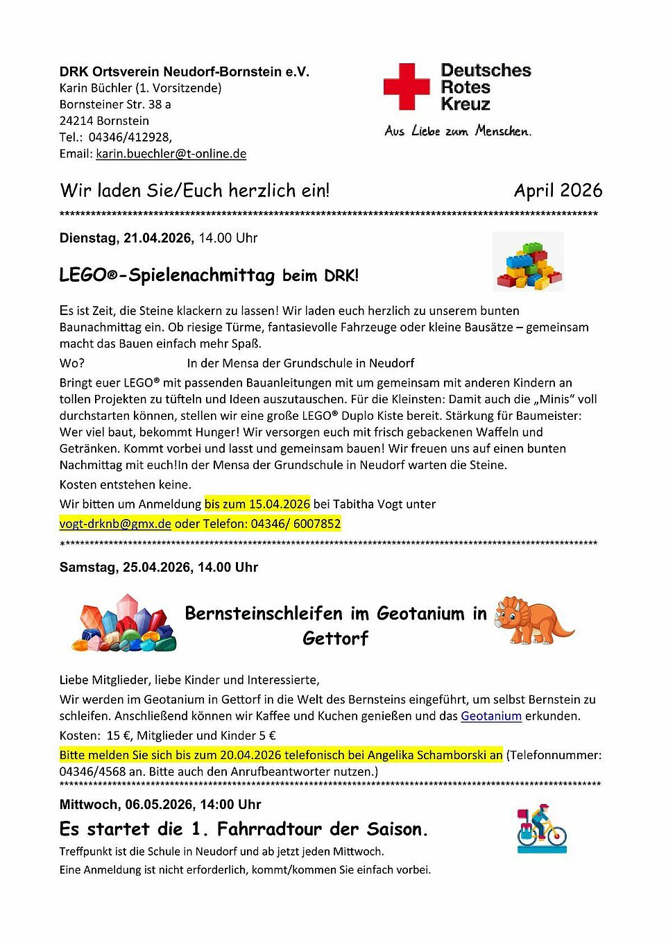 „Wenn Sie neugierig geworden sind und aktiv ihren DRK-Ortsverein unterstützen wollen bitte kontaktieren Sie die Vorsitzende direkt oder wenden Sie Sie Sich an uns auf einen der folgenden Wege: