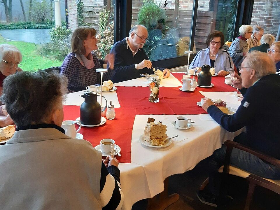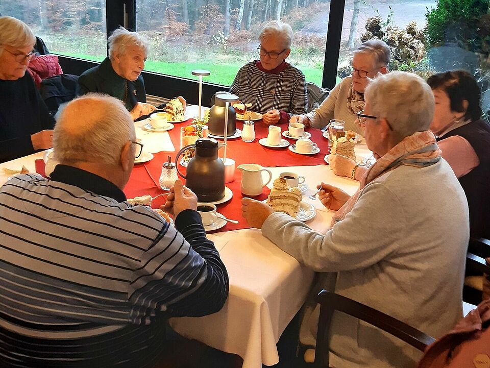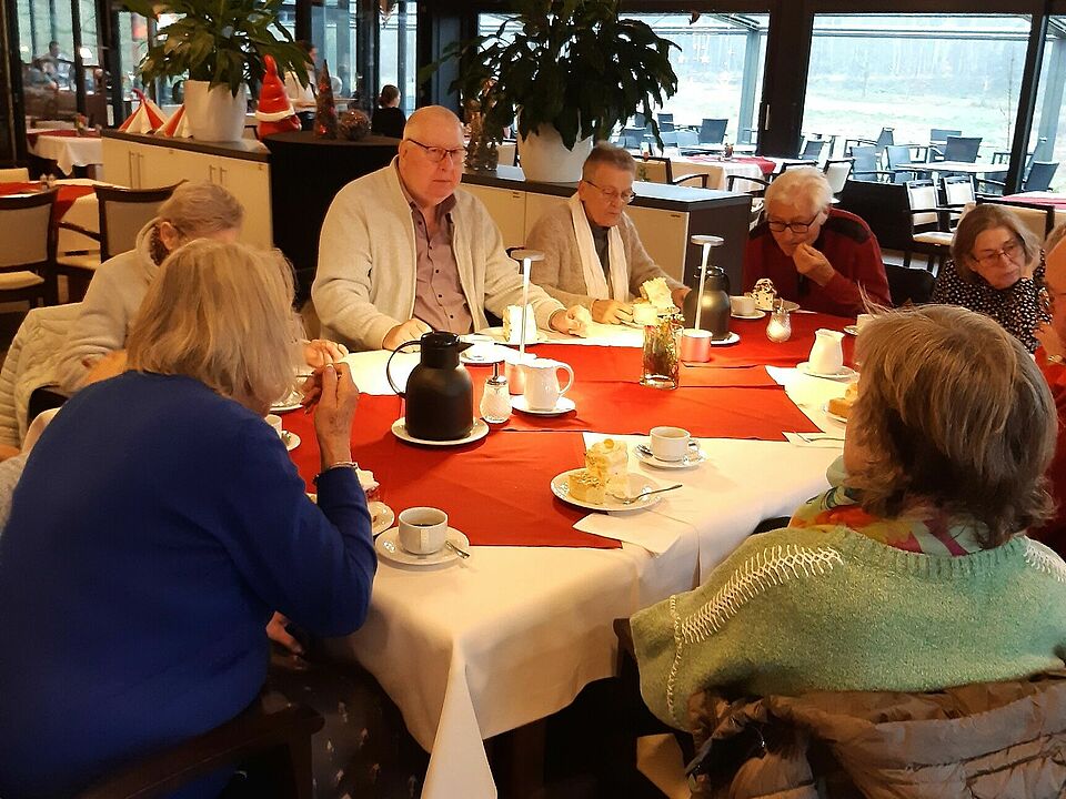 Am 27.11.2025 haben wir die Senioren unseres Ortsvereins zu einem vorweihnachtlichen Kaffeenachmittag eingeladen. Dieser Kaffeenachmittag fand jedoch nicht in unserer Gemeinde statt. Wir haben einen Ausflug in den vorweihnachtlichen Kreis Rendsburg-Eckernförde ausgearbeitet. Wir starteten um 13.30 h von unserem Stützpunkt in Ostenfeld. 27 Mitglieder hatten sich zu diesem Kaffeenachmittag, verbunden mit einer Fahrt ins Blaue, angemeldet. Entlang der B77 fuhren wir durch bereits weihnachtlich geschmückte Dörfer. Hohenwestedt durchquerten wir das Zentrum mit reichgeschmückter Weihnachtsdeko. Unsere Teilnehmer hatten unser Ziel immer noch nicht erraten. In Hohenwestedt fuhr unsere Kolonne Richtung Neumünster. Die Spannung wuchs in den Fahrzeugen. In zügiger Fahrt durchfuhren wir den Naturpark Aukrug mit seinen Wiesen und Wäldern entlang der Strecke. Von der B430 führte uns ein kurzer Wirtschaftsweg zu unserem Ziel Café „Am Boxberg“. Am Fuß des 77,5 m hohen Boxbergs konnten wir in gemütlicher Atmosphäre die Kaffee- und Kuchenspezialitäten des Hauses genießen. Uns wurden große Stücken Torte wie Schwarzwälder Kirschtorte, Mandarinen-Schmand Torte, Spekulatientorte etc. und leckeren Butterkuchen serviert, dazu reichlich Kaffee und auf Wunsch Tee. In gemütlicher Runde und regen Gesprächen verlief ein harmonischer Nachmittag. Zu einem Spaziergang um das Gelände und durch den Naturpark konnten wir unsere Gäste aufgrund der Wetterlage nicht begeistern. Es regnet und war etwas stürmisch. Um ca. 17 h machten wir uns durch den dunklen Naturpark Aukrug auf den Heimweg. Alle Teilnehmer sind gut zu Hause angekommen und freuen sich auf den nächsten